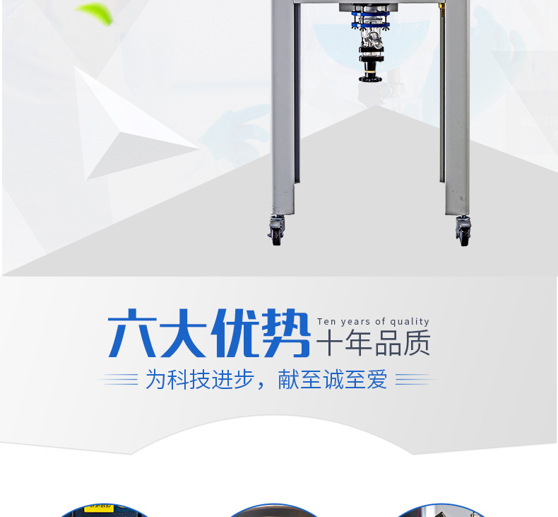 1.ptfe密封混合口+不锈钢变频混合系统耐腐蚀,耐磨,高强度,高密封性。