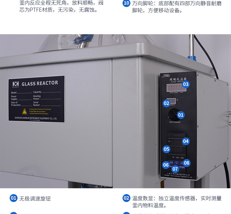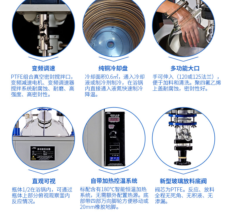 在反应过程中,它可以为您提供无与伦比的充分搅拌效用,并配置了加热设备和温度控制系统,从而节约了成本和购置另一个加热单元的麻烦。无需拆除即可轻松清洁和维护。试验从那时起,它变得更为易于。